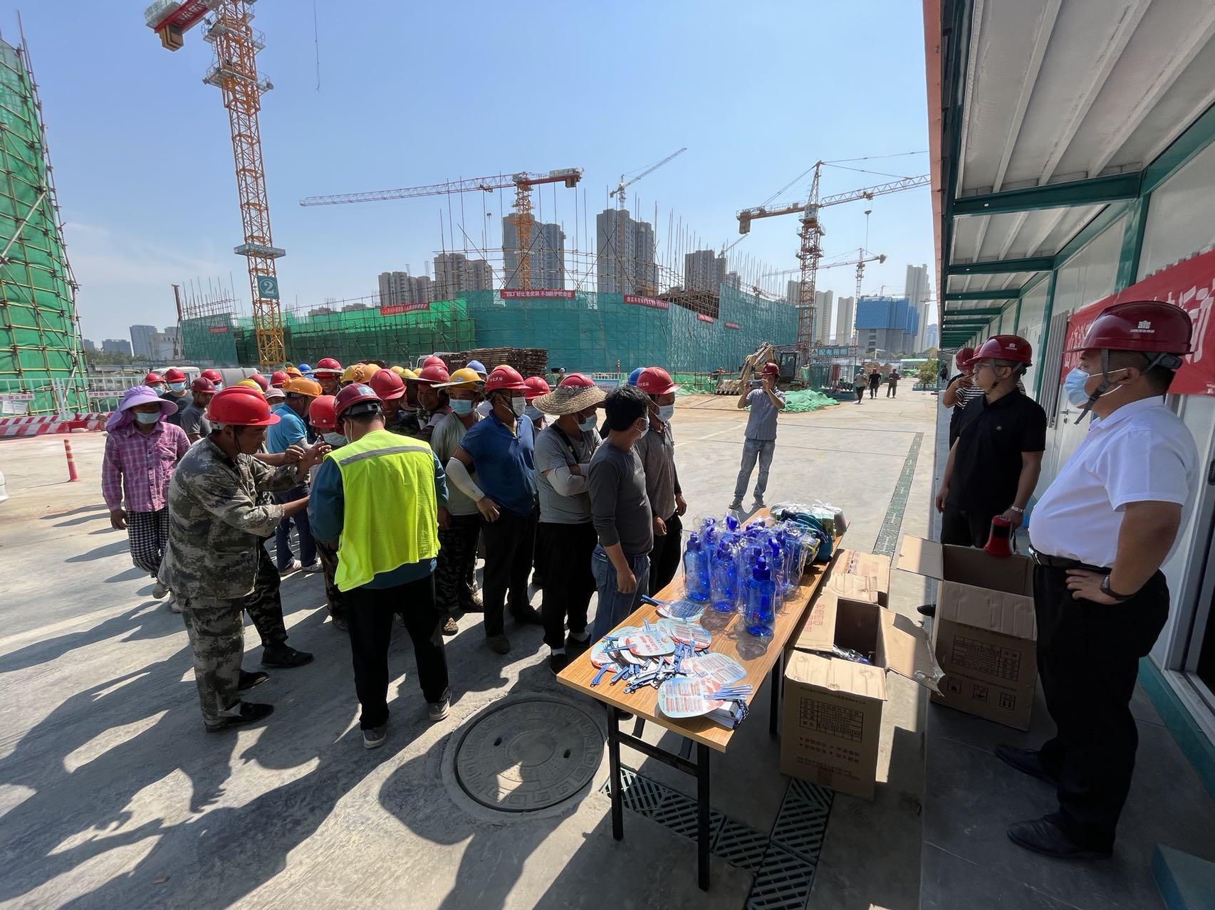 炎炎夏日,挥汗如雨。为切实关怀在高温下辛苦奉献的建设者,6月21日,集团办公室代表集团公司工会到各在建项目开展“夏季送清凉”慰问活动,叮嘱项目部要切实关注安全,绷紧安全弦,做好防暑降温。